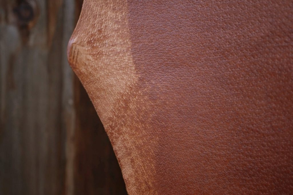 縫製職人は、自身が納得いく本物の素材といえばナチュラルなヌメ革しか無かったため、欲しい革は自分の手で作りたいという思いから自らの手で目の前にある革に手を加えオリジナルレザーを仕上げるようになりました。